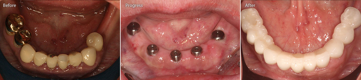 Photo album showing progress pics of clients who have had dental implants (full fixed; full removable, anterior and posterior)...